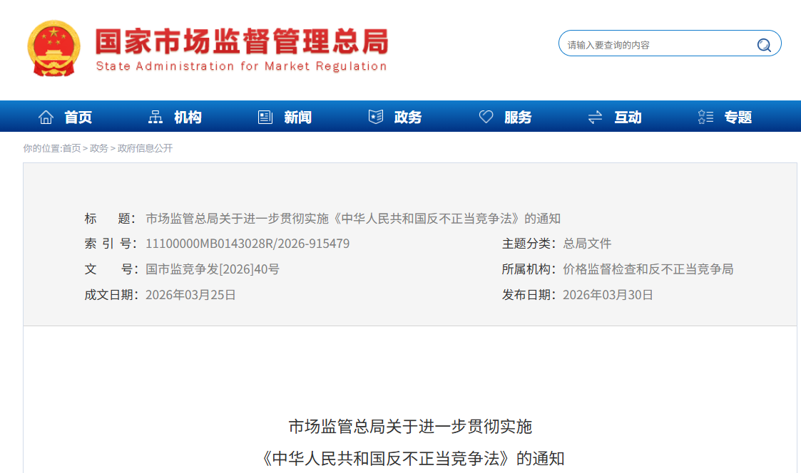 党中央、国务院高度重视强化反不正当竞争工作。习近平总书记多次作出重要指示批示,深刻指出反不正当竞争是完善社会主义市场经济体制、推动高质量发展的内在要求。《中华人民共和国国民经济和社会发展第十五个五年规划纲要》提出“强化反垄断和反不正当竞争执法司法”。贯彻实施好新修订的反不正当竞争法,是从制度上法律上确保党的有关路线方针政策和决策部署得到全面贯彻和有效实施的重要保障,对进一步完善市场竞争规则,加快建设高效规范、公平竞争、充分开放的全国统一大市场具有重要意义。要深刻认识反不正当竞争法对规范市场秩序、优化营商环境、推动高质量发展的深远意义,准确理解修订精神和核心内容,切实做好学习宣传和贯彻实施工作。