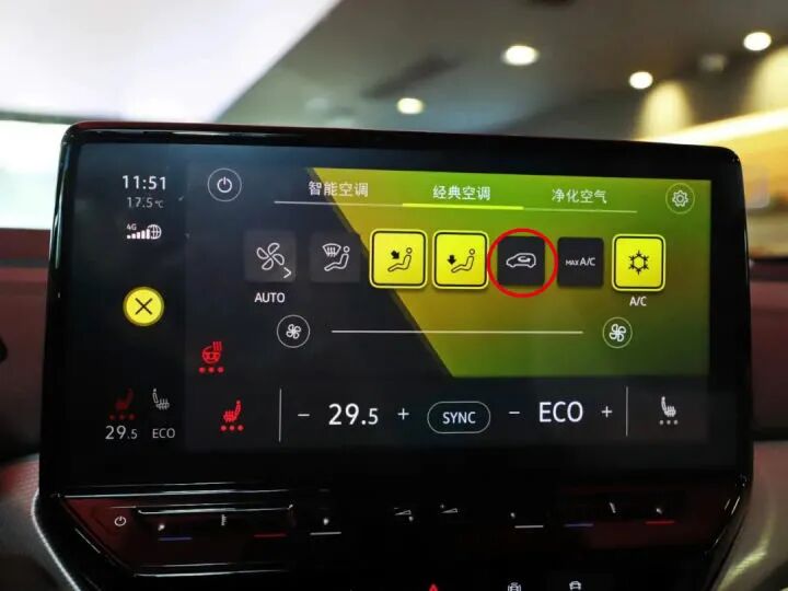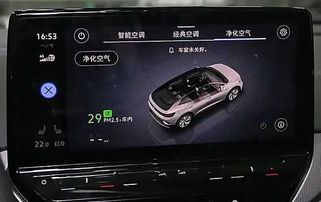 解决小技巧:这种天气情况下,空气中PM2.5爆表,可以打开净化空气功能,ID.4 CROZZ标配化空气功能,这时车辆会自动净化车内空气,过滤杂质,主动杀灭空气中的细菌和霉菌,保证车内空气质量,同时建议适当保持在内循环模式下,这样可以始终保证车内有清洁的空气。