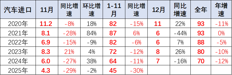 专家解读|2025年1-11月中国汽车进口45万辆降30%