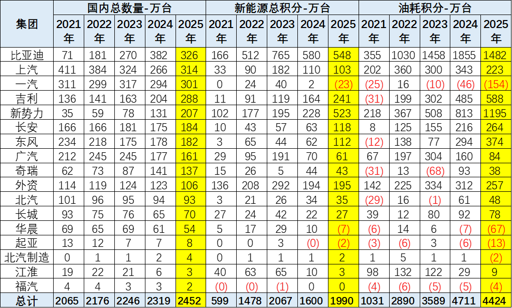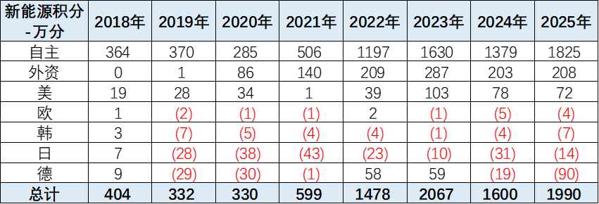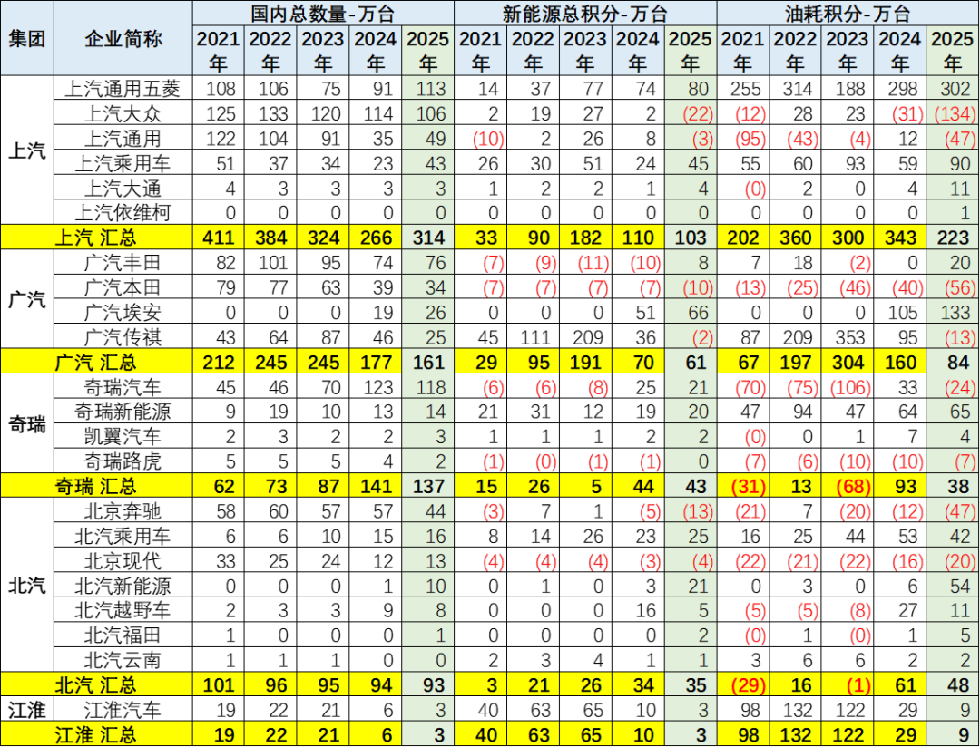 总体看,2025年各企业新能源车表现很强,新能源超速发展必然带来油耗积分和新能源积分的正积分全面超预期,这样导致新能源积分的卖价难以提升,估计没啥价值,这是很好的事情。